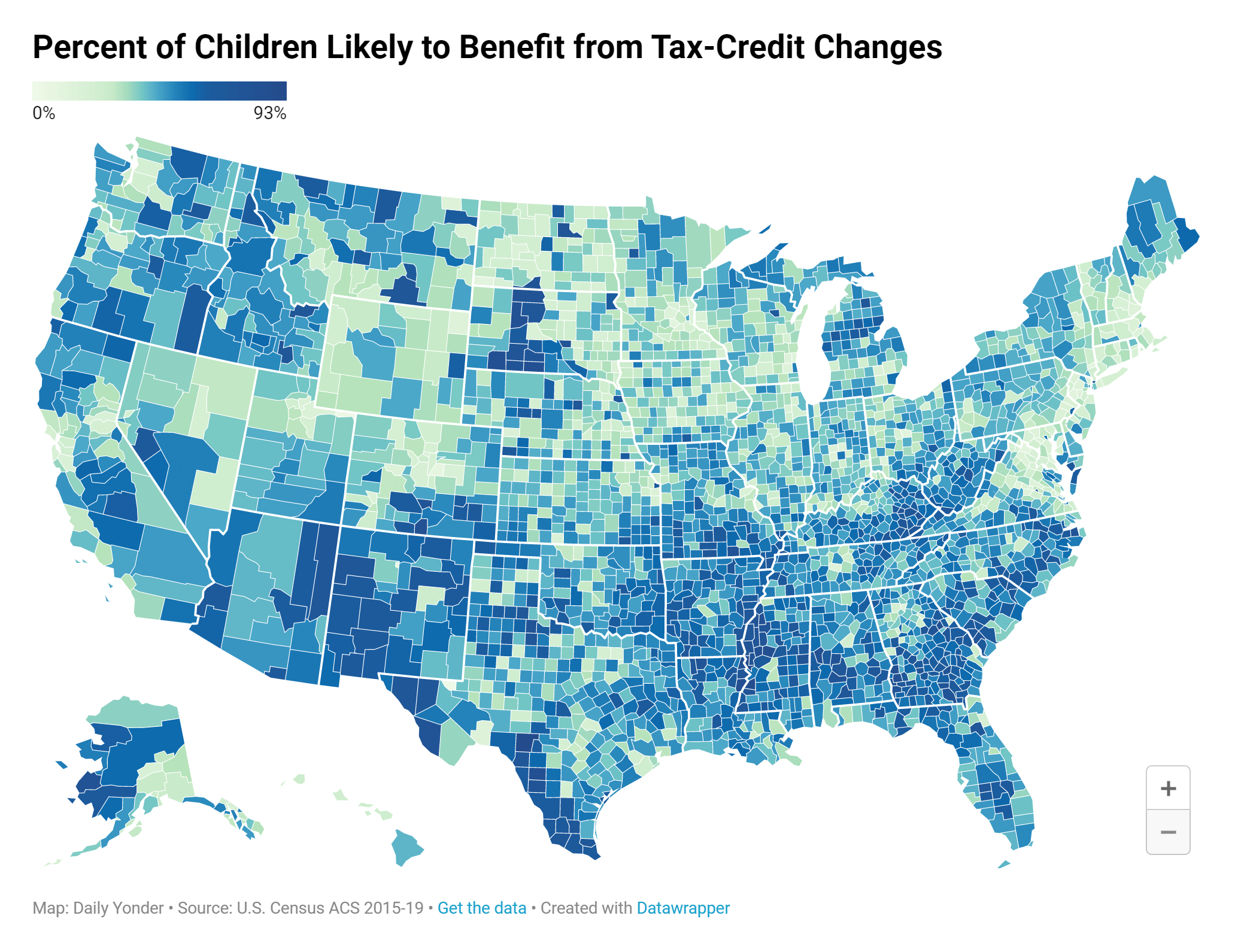 An analysis of Census data shows that about 49% of rural children were likely to have received increased child tax credits because of changes affecting low-income families. In metropolitan areas, about 39% of children were likely to have benefited from those changes. See below for more.