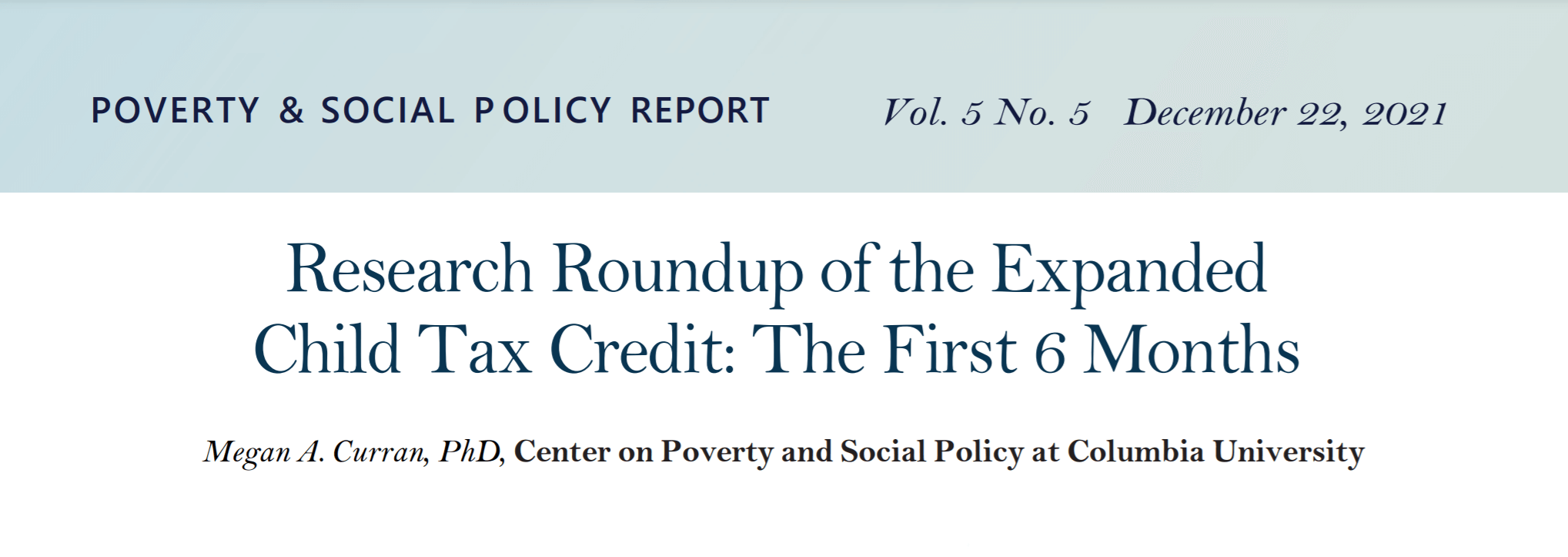 NEW: RESEARCH ROUNDUP OF THE EXPANDED CHILD TAX CREDIT: THE FIRST SIX MONTHS